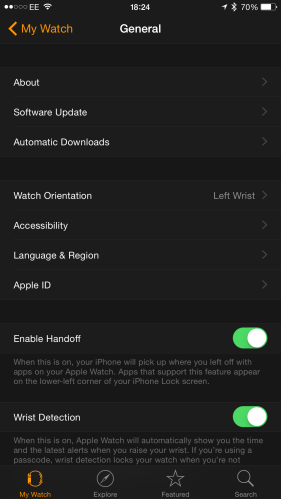 Existe também a possibilidade de activar o handoof, o que nos permite continuar a usar a aplicação mas no iPhone, no ponto em que estávamos no relógio.