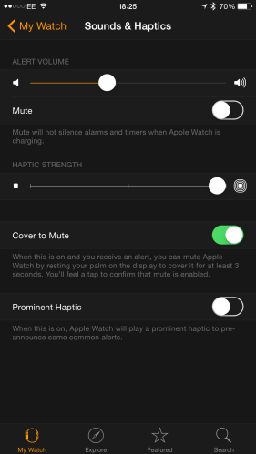 As notificações tem sons diferentes e vibração é também ela diferente dependendo do tipo de notificação. Não são intrusivas e podemos controlar o volume das mesmas, para não nos esquecermos que temos notificações por ver, o Apple Watch apresenta-nos um pequeno ponto vermelho no topo do ecrã, opção que também pode ser alterada.