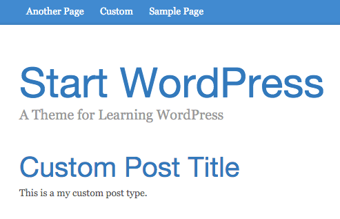 Now example.com/custom will only pull in posts from the custom post type we created. Right now, the custom post type is set up to only do things that the normal posts can do, but the more you fall down the rabbit hole, the more possibilities you discover.