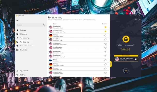 E não é apenas para o Netflix, mas também para o Hulu, HBO GO, YouTube, ESPN, BBC, etc. Em suma, com um simples clique poderá escolher um servidor otimizado para o seu serviço de streaming preferido, com acesso integral aos conteúdos.